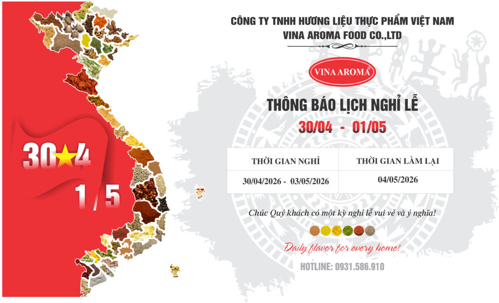Home » VINA AROMA THÔNG BÁO NGHỈ LỄ 30/4 & 01/05